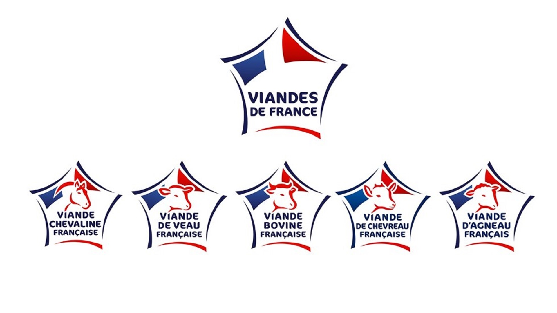 La démarche Viandes de France est le résultat concret de l’engagement de tous les acteurs de la filière viande pour une alimentation de qualité, fondée sur l’origine, le savoir-faire et les bonnes pratiques en matière d’élevage. Elle se manifeste à travers un logo, facilement identifiable grâce aux marqueurs de l’identité française (forme hexagonale, couleurs bleu-blanc-rouge), et décliné pour chacune des espèces concernées :