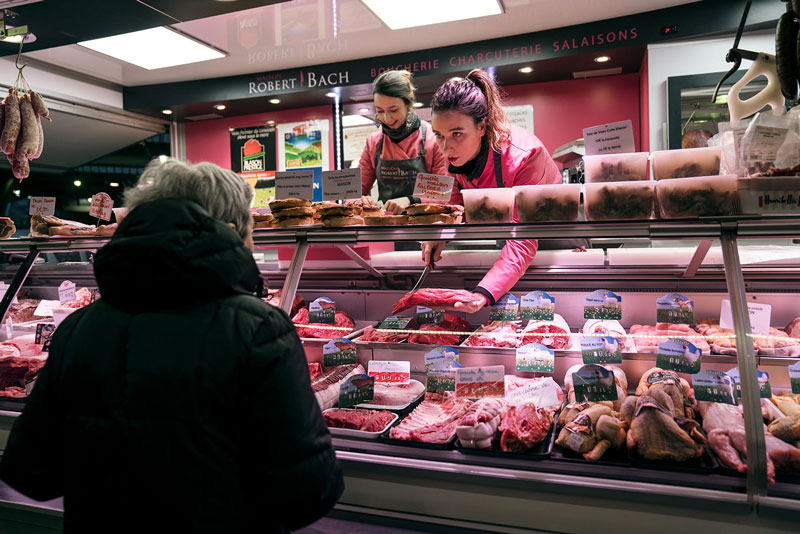 On voit de moins en moins de gros mangeurs. Alors on adapte les tranches, on propose de nouvelles découpes. C’est la société française qui évolue, on l’observe surtout au niveau de la taille des foyers. Avant, on préparait un gigot d’agneau pour huit à neuf personnes, pour des familles nombreuses. Aujourd’hui, il est rare que nos clients en demandent pour plus de quatre personnes. On voit même des bouchers réfléchir à de nouvelles idées pour proposer des morceaux- pour deux personnes ! Ce qu’on voit depuis quelques années, c’est que nos clients consomment différemment la viande et ça va dans le bon sens ! On voit qu’ils prennent le temps de réfléchir aux légumes qui vont l’accompagner et parfois même ils ont déjà les légumes et cherchent le bon morceau de viande qui ira avec.