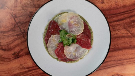 - Réaliser des boulettes avec la viande de veau, puis les aplatir légèrement et assaisonner.