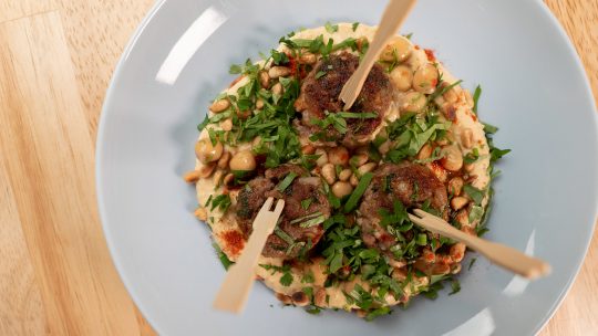 Pour la garniture, salade aux noix :