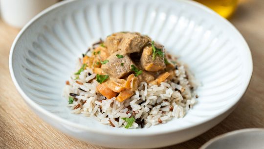 Curry coco de veau, légumes grillés et riz sauvage